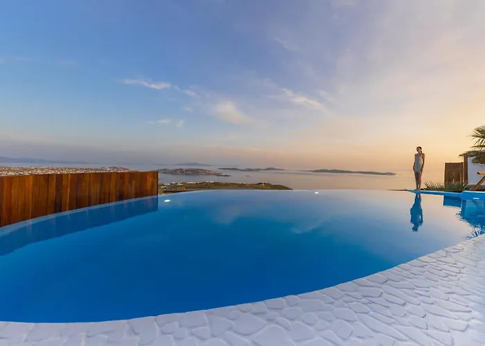 Είναι σε απόσταση 15 λεπτών οδικώς από Μικρή Βενετία. Το κατάλυμα είναι σε απόσταση 6 χλμ. από το κέντρο της Μυκόνου. Αρχαιολογικός Χώρος Δήλος βρίσκεται πολύ κοντά στη βίλα.